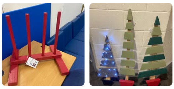 Selworthy Gifts focuses on practical woodwork, with learners crafting items from pallets such as hearts, planters, and festive trees. Selworthy Crafts celebrates imagination, with handmade cards, pom‑pom wreaths, dried flower bouquets, hot chocolate reindeer and much more.